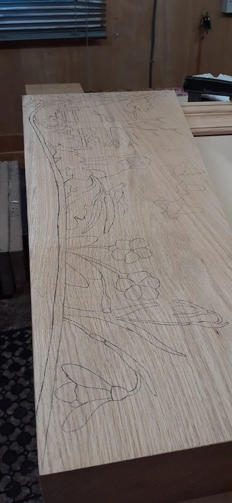 Initial stage of roughing out. Only chisels are used in all of my carving projects