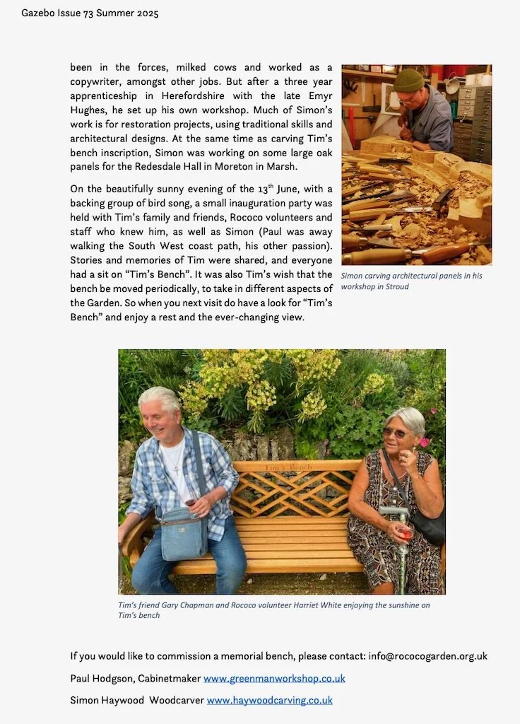 Simon is based in the Slad Valley in the Cotswolds, where he designs and creates, repairs and restores quality decorative ornaments and architectural carvings in a variety of woods. He works on both original designs and bespoke projects based on clients' ideas.