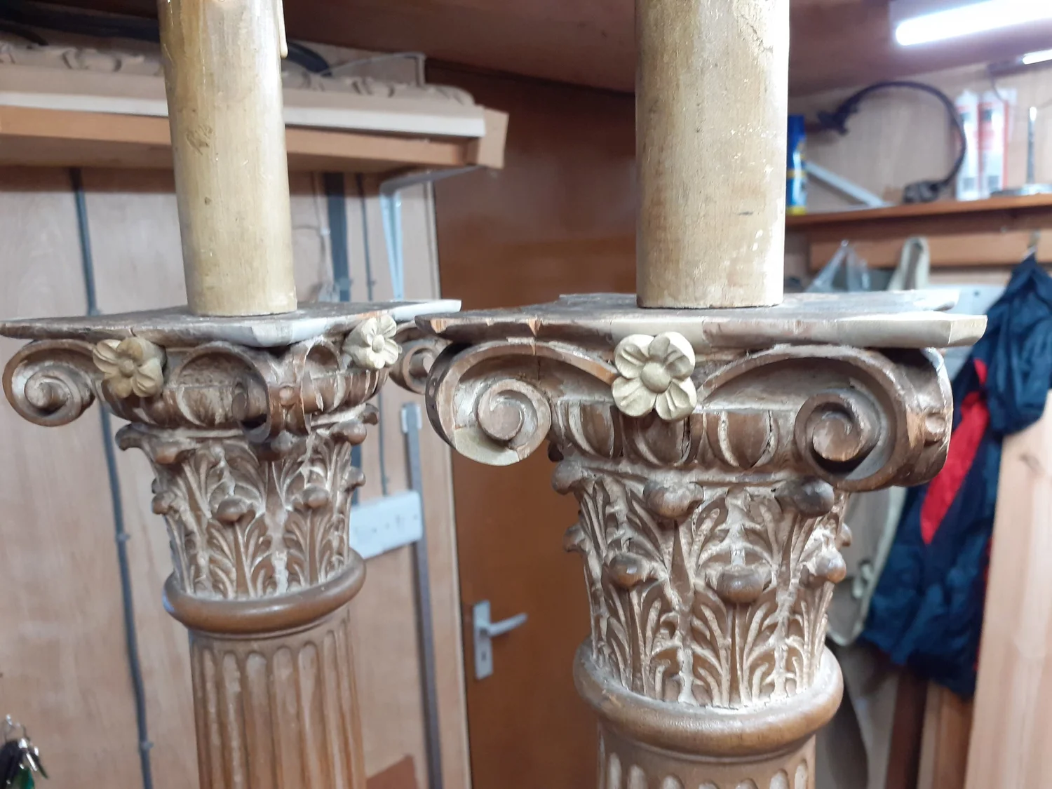 Replacement of flowers and reconstruction of all damaged corners to these antique lamp holders